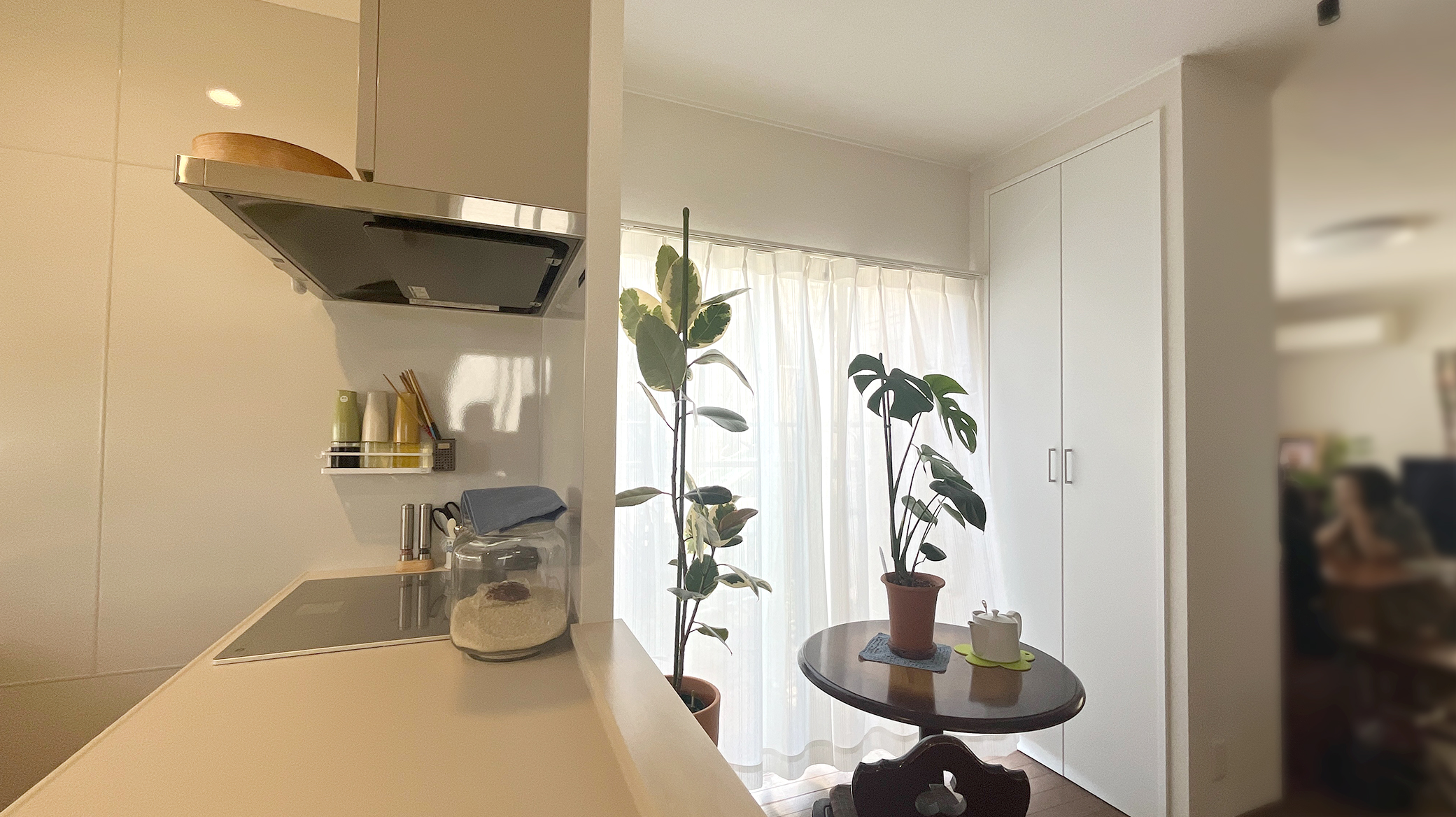 また、キッチン横のスペースは「収納+植物コーナー」に。