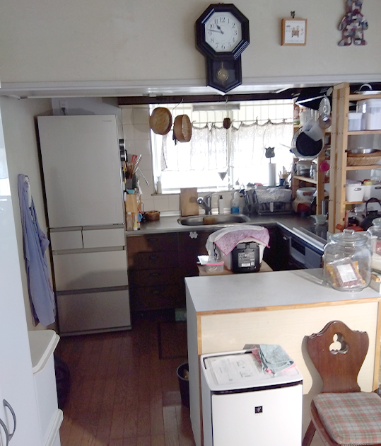 リフォーム前のキッチンは、窓に沿ってL字型に配置されており、シンクと作業台が窓側、IHは右側の壁付けにありました。