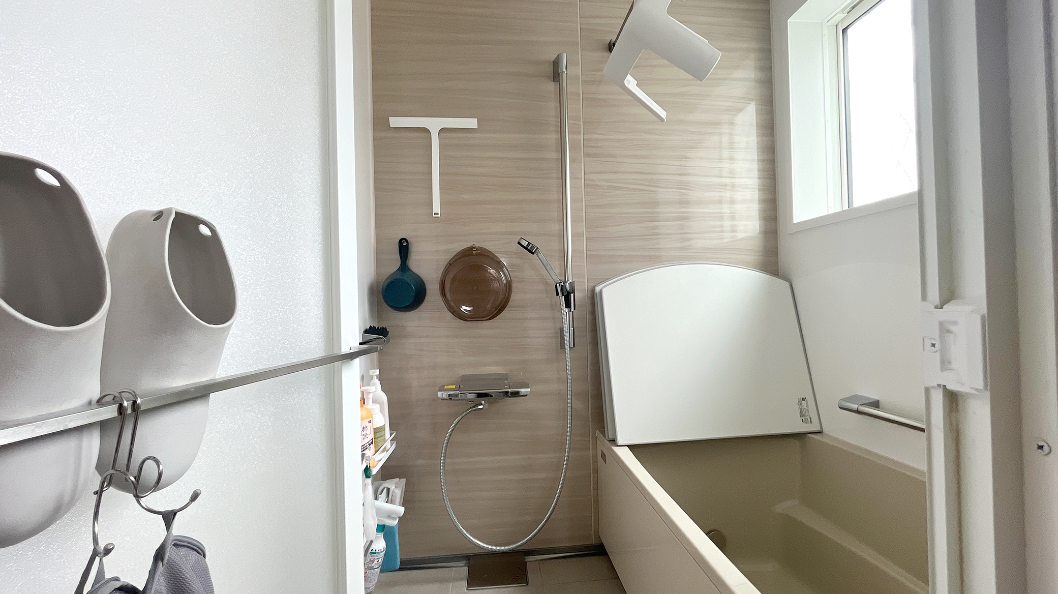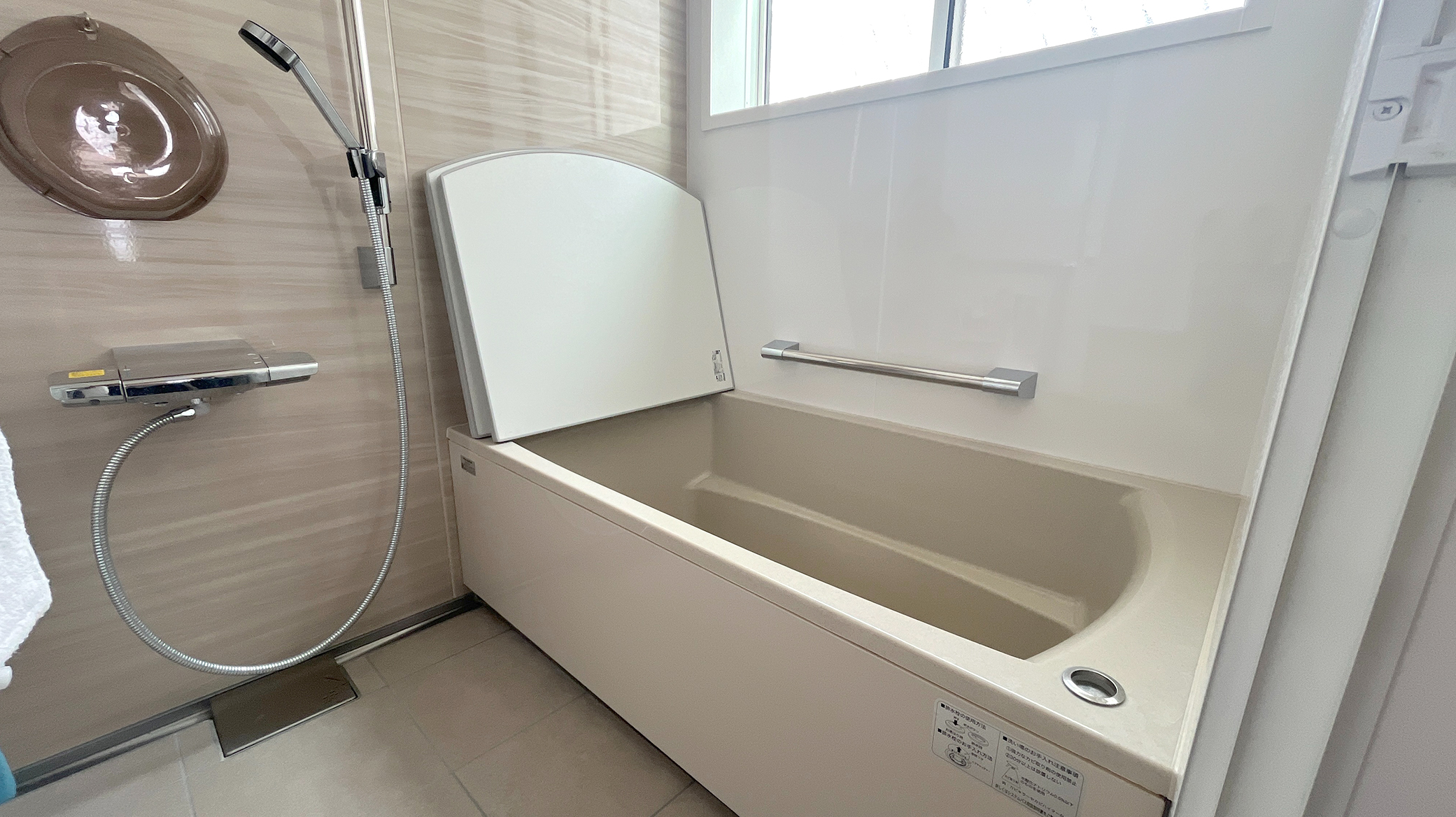 お風呂も同じくタカラスタンダード製で、浮かせて収納できるパーツ構造により、お掃除もラクラク。