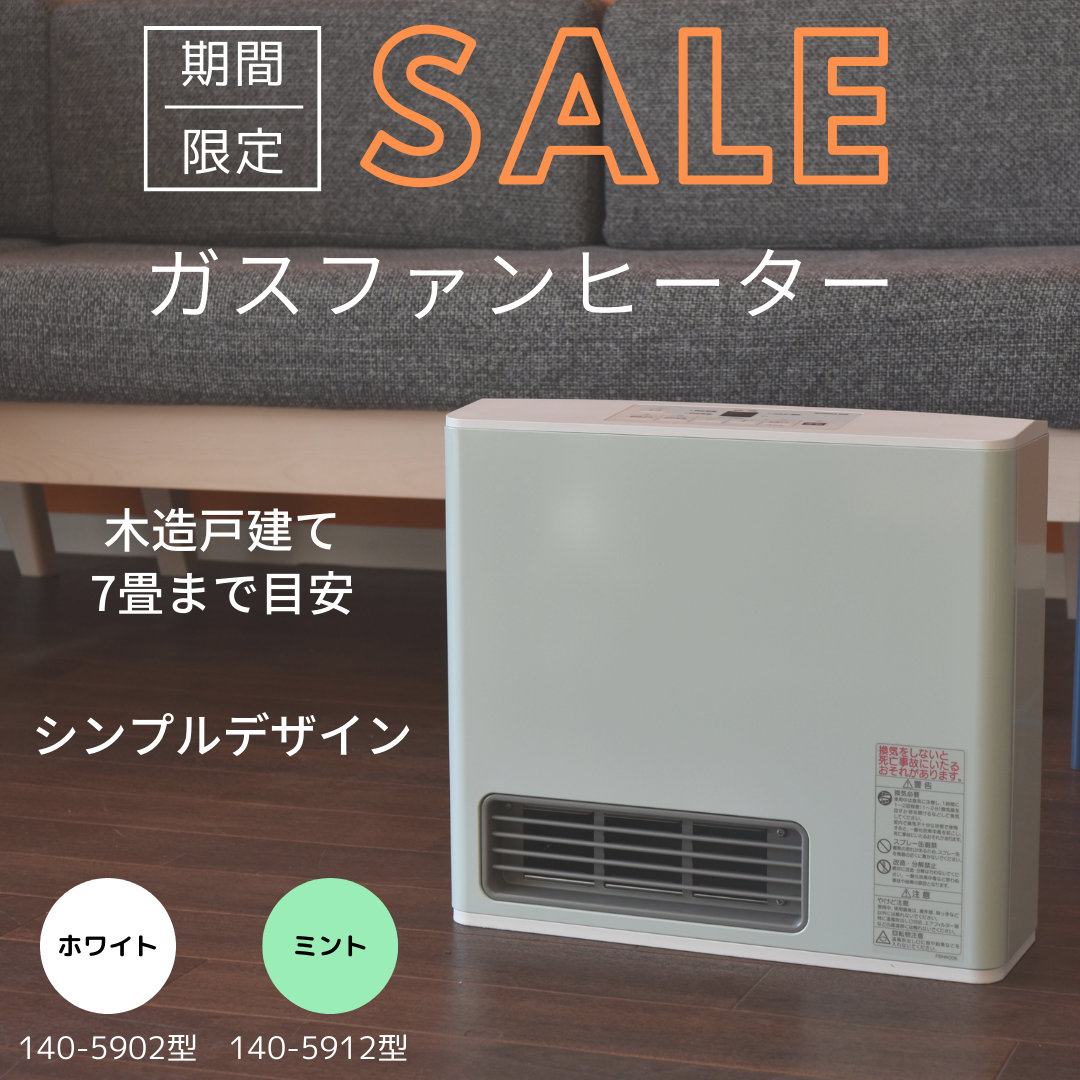 スイッチONからわずか5秒ですぐに暖まり、パワフルな温風がお部屋を快適にするガスファンヒーター。
