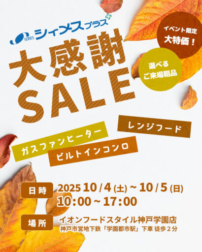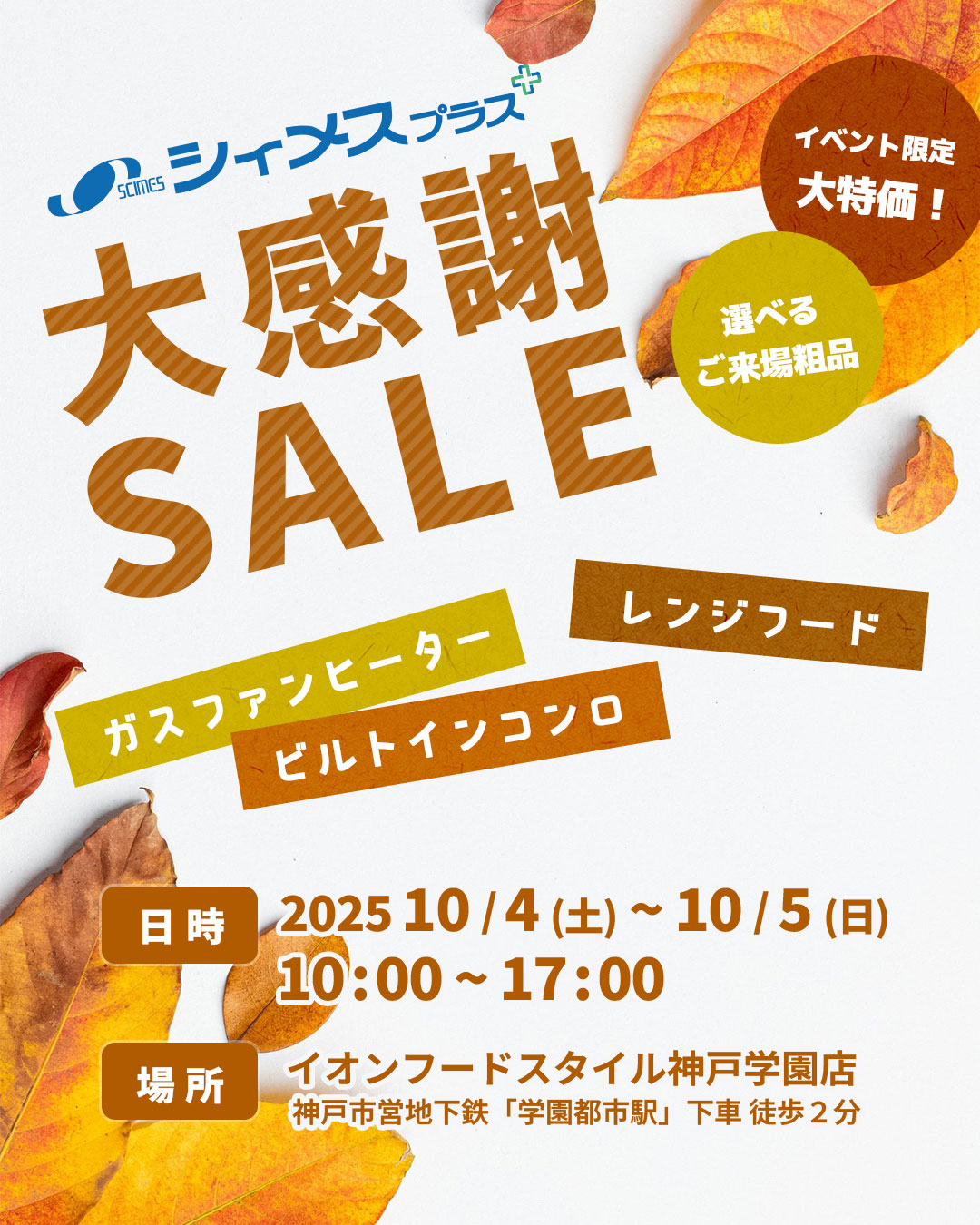大阪ガスサービスショップ シィメスプラス では、日頃のご愛顧に感謝を込めて 「大感謝祭セール」 を開催いたします。