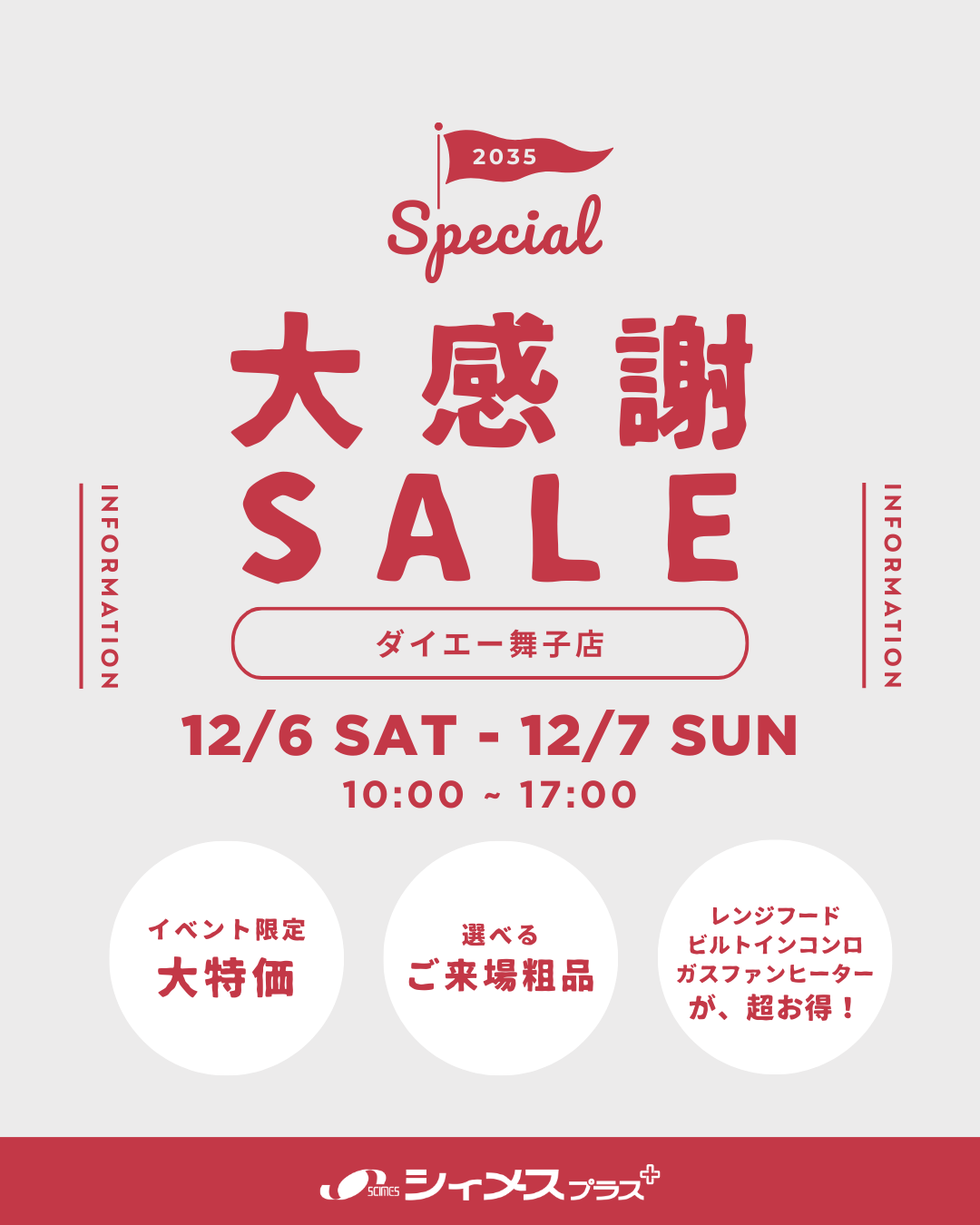 大阪ガスサービスショップ シィメスプラス では、日頃のご愛顧に感謝を込めて 「大感謝祭セール」 を開催いたします。