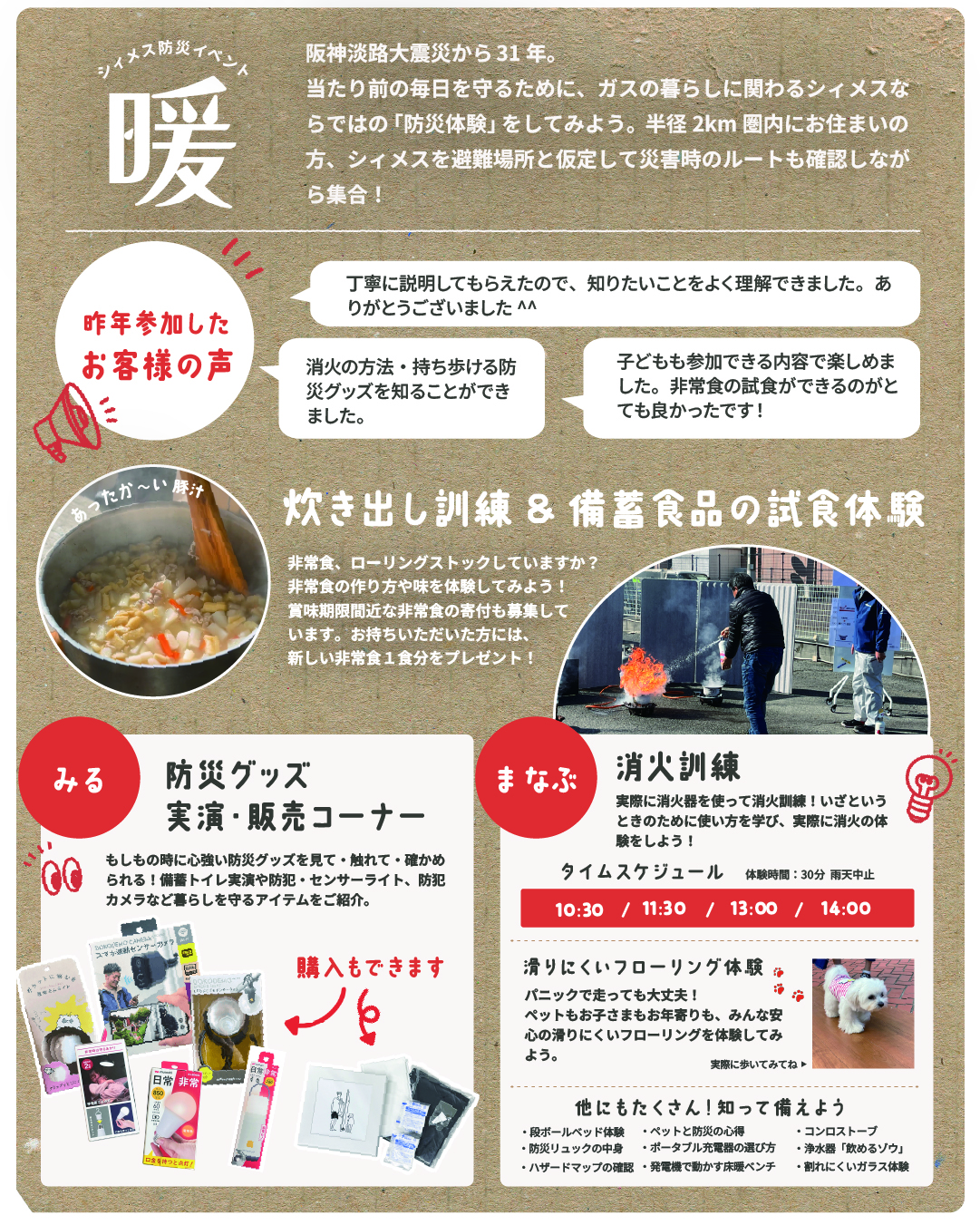 「備えが暮らしに、暮らしながら備える」をテーマに、 当たり前の毎日を守るため 日々の生活でできること、シィメスができること、 防災について考える日にしよう!