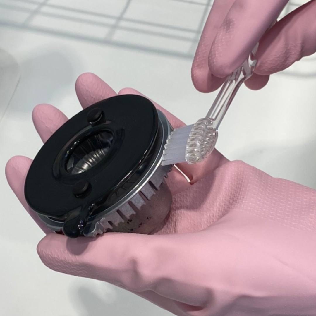 柔らかい歯ブラシで、穴や溝の目詰まりを取り除いてください。