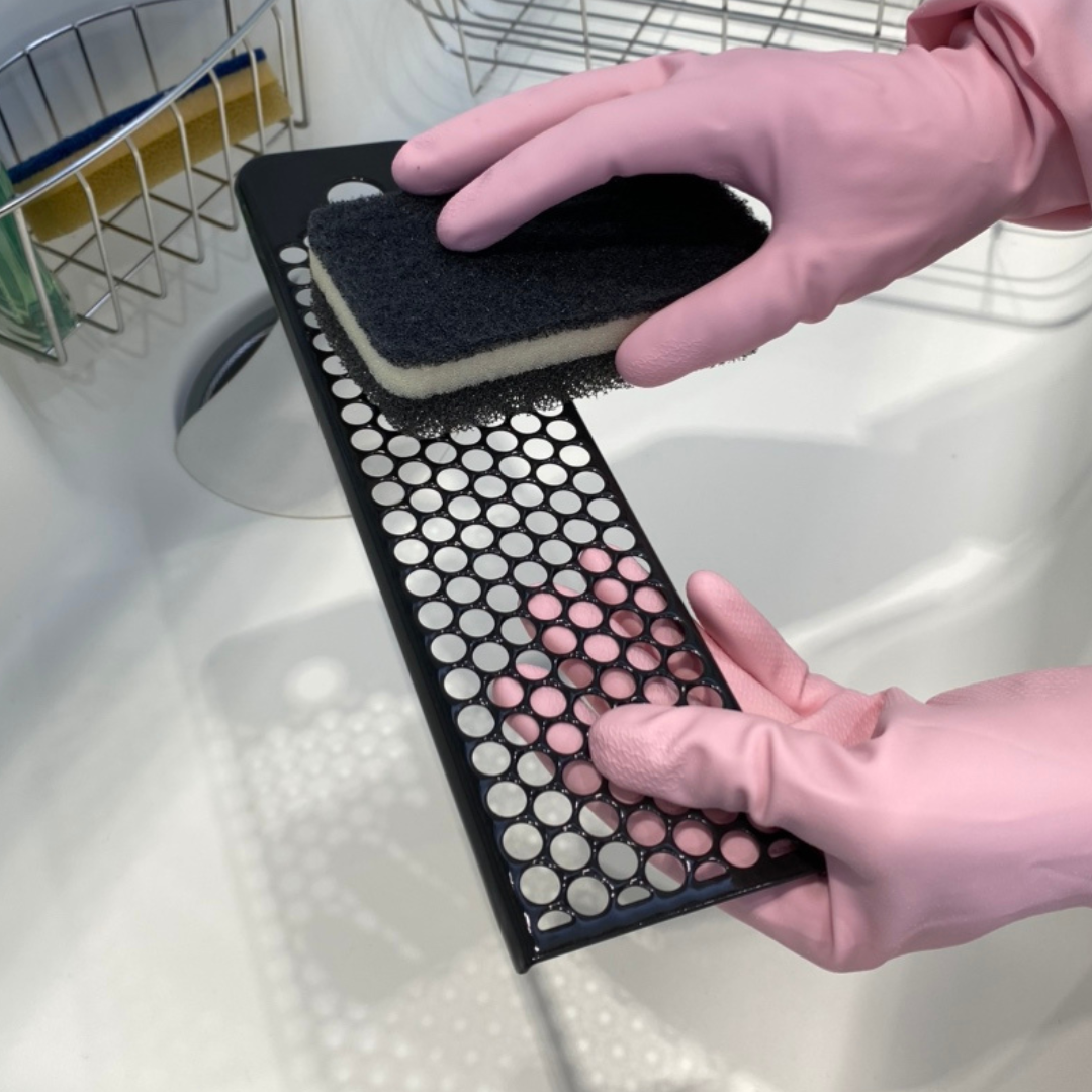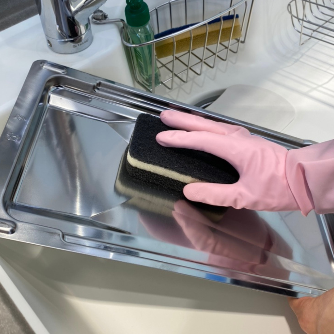 取り外し、台所用中性洗剤やクリームクレンザーをつけたスポンジで洗います。