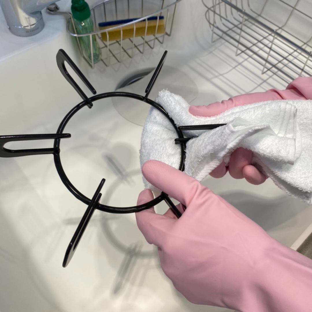 下火カバーも、台所用中性洗剤をつけた柔らかい布巾でふき取ります。