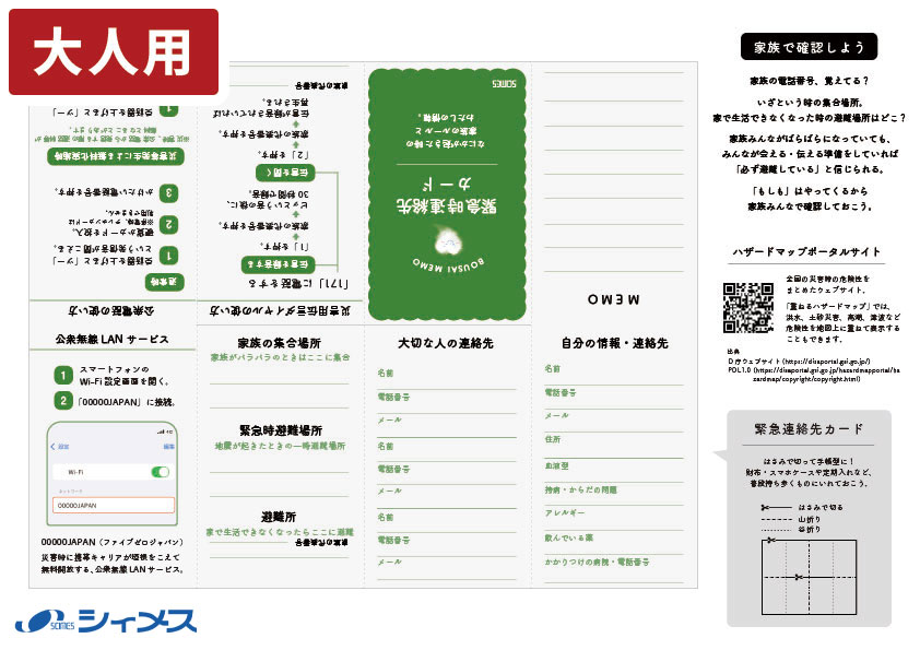 ハザードマップや家族の電話番号、緊急連絡のやり方は、インターネットがつながらなくなった場合にも確認できるようにしましょう。