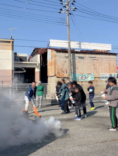 実際に消火器を手に取り、使い方を体験。