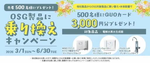 → 飲用として使われることが多く、整水器で水を電気分解して生成される「アルカリイオン水」や「電解水素水」などがあります。