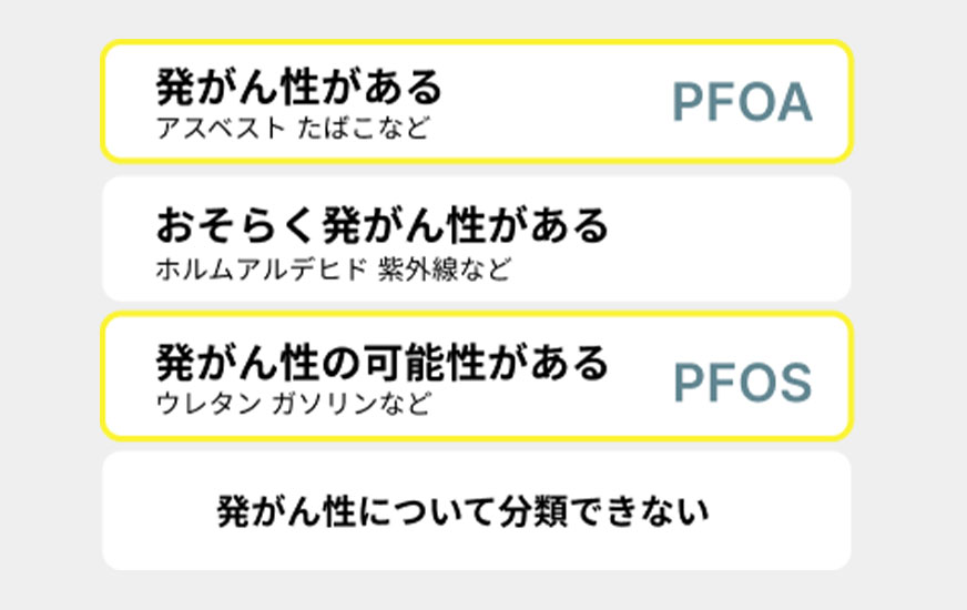 テフロン加工の調理器具や一部の食品包装材などの製造工程で使用されていた物質です。現在は国内での製造・使用は禁止されています。
